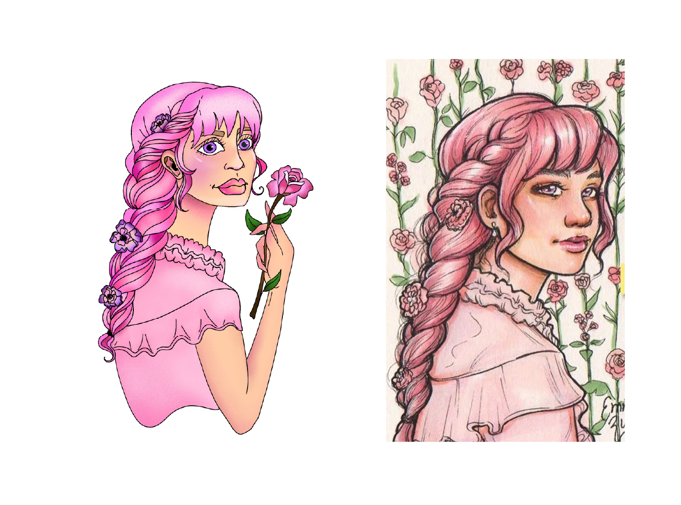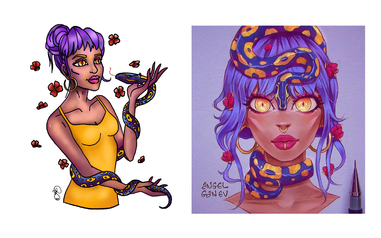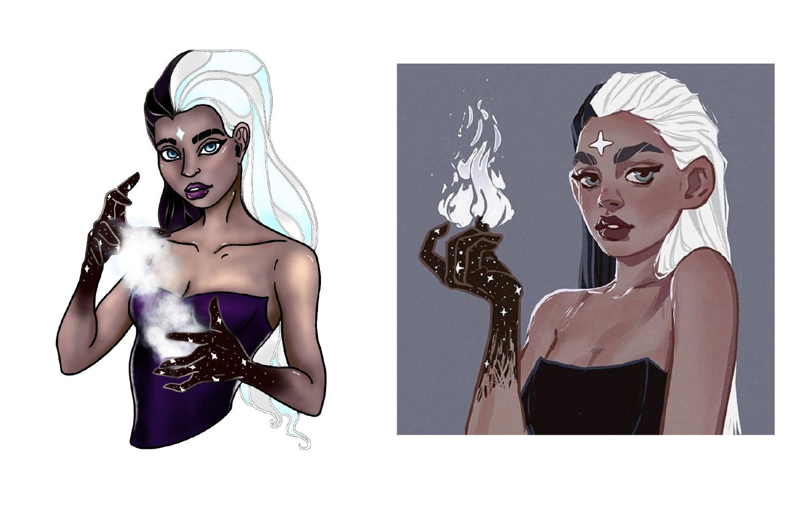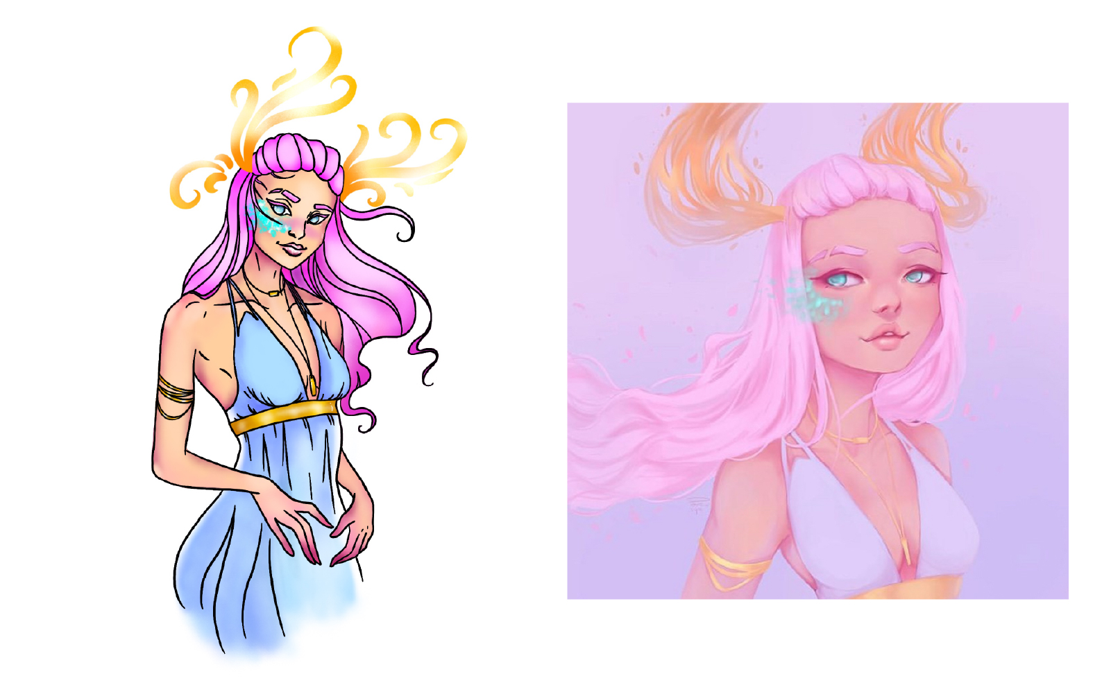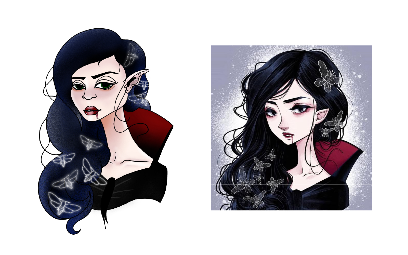 I'm always interested in playing with different techniques in my art. Every now and then, I try to step out of my comfort zone with a new style or artistic challenge. The following is a collection of characters I recreated (left) next to their inspiration (right). I had a lot of fun playing around with this style! For the most part, my focus was on trying out blending techniques in the digital space. I'm used to working with blending paints and I think it's interesting to see what kind of tricks can span physical and digital, and where the two mediums differ. I was also testing out creating custom paint brushes in Procreate to fit the style I was going for.