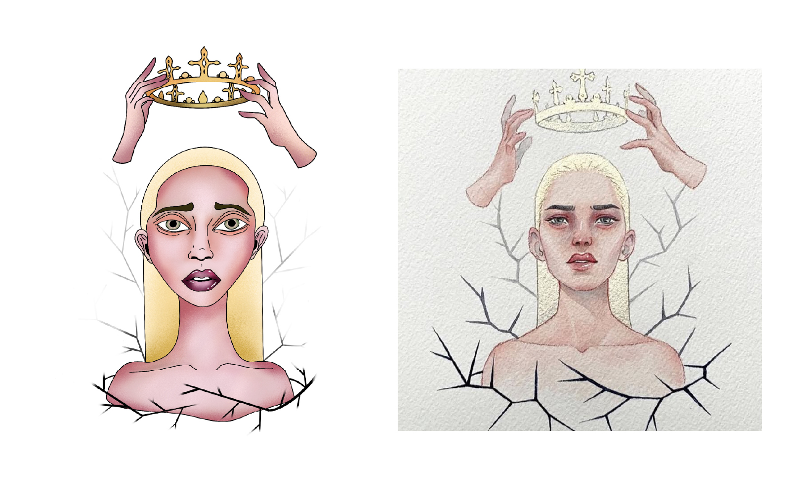Bonus: To the left is a self-portait with my cat, Ophelia.