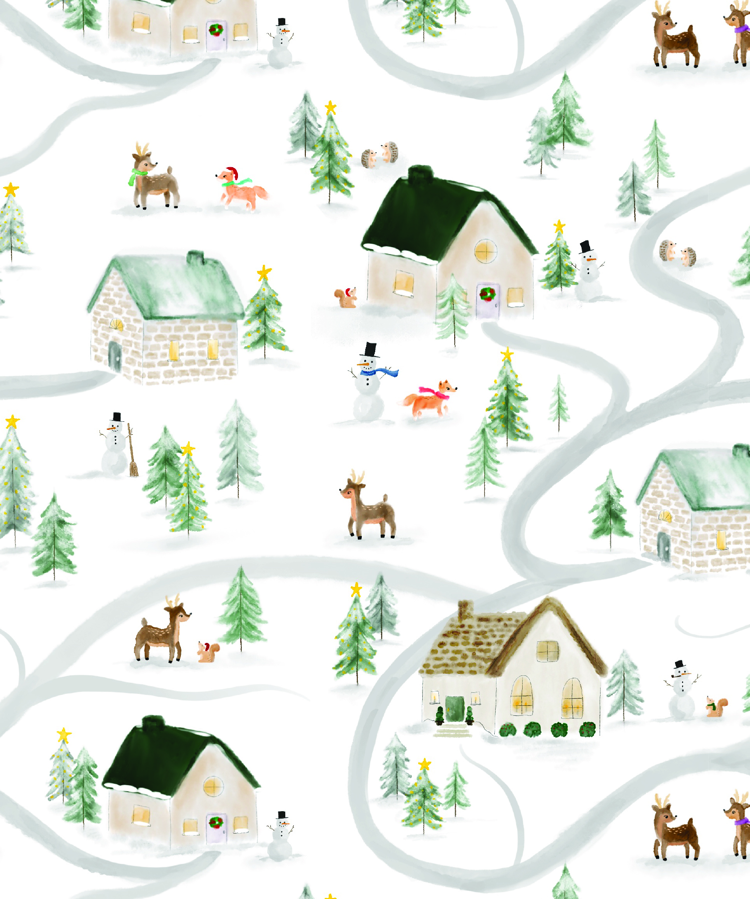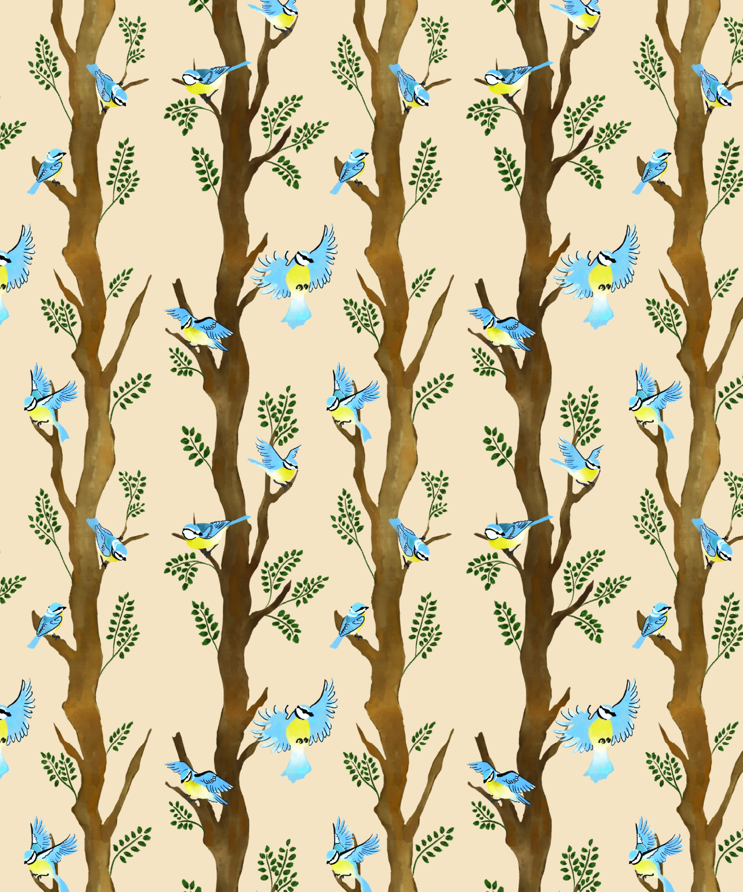 Outside of work, I like to continue praticing my hands-on studio skills with illustrating and crafting. For the past few years, I have been working on learning surface design and pattern-making for fabric. I'll first work on the individual illustrations. These are created either through pen and paper sketches or through a digital watercolor technique on the iPad. Then I create a seamless 10" x 10" pattern by combining the different illustrations together into one composition. I'm always excited to see how the pattern translates from the digital space onto the physical fabrics.
