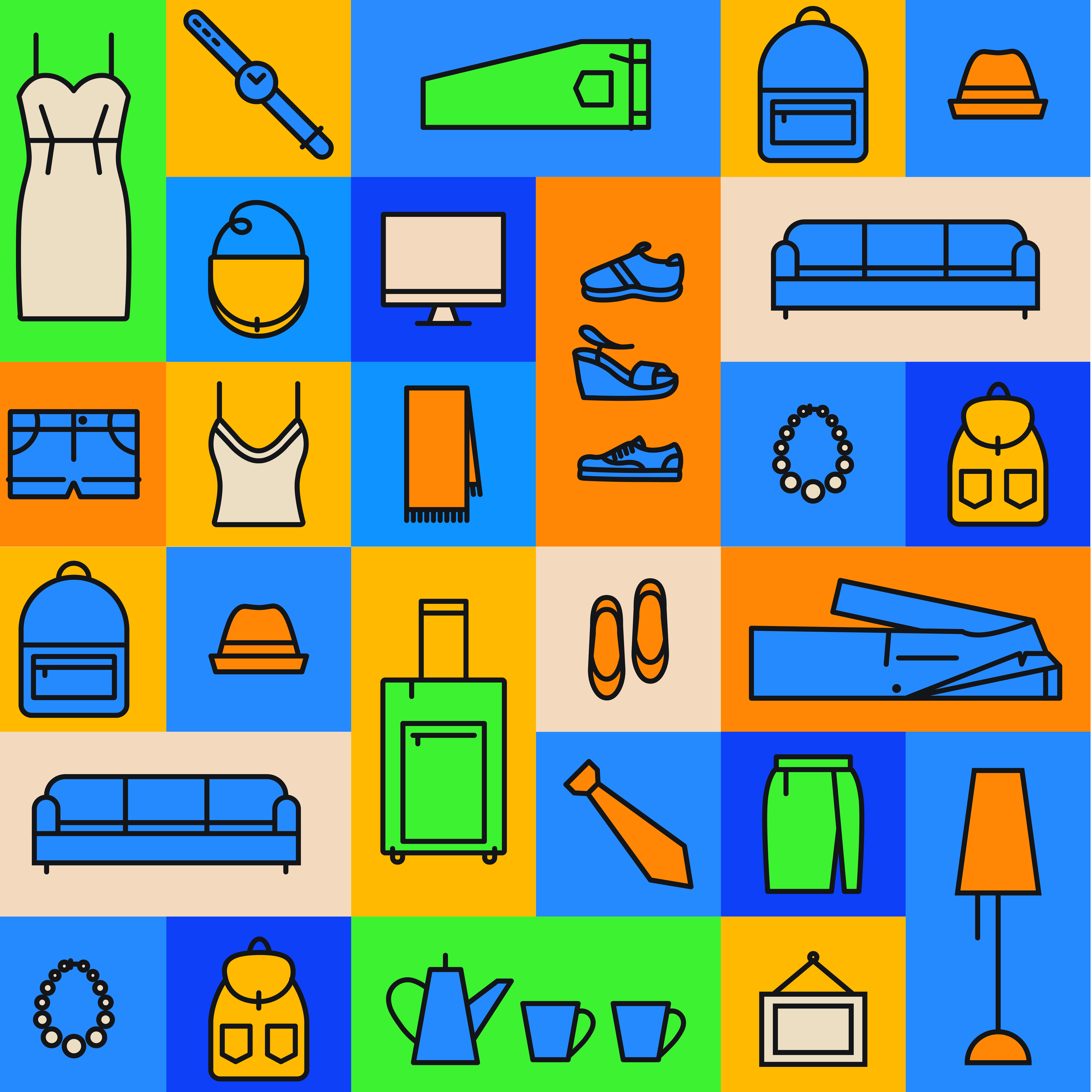 The custom pattern appears throughout the store, particularly in larger corners such as the furniture area, to add visual interest and cohesion across the expansive floor plan. This system allows for consistent branding while remaining flexible enough to adapt to different layouts and formats.