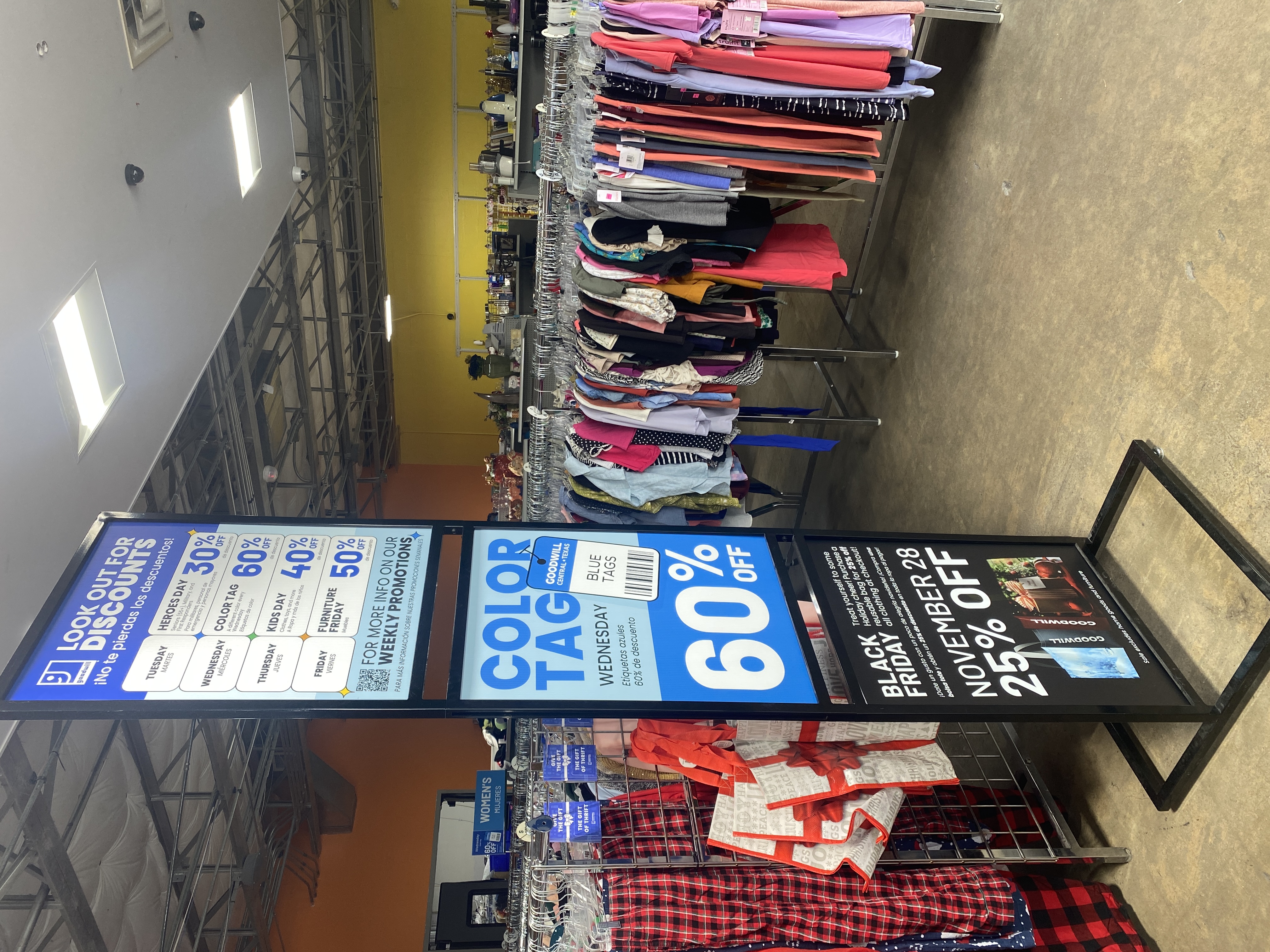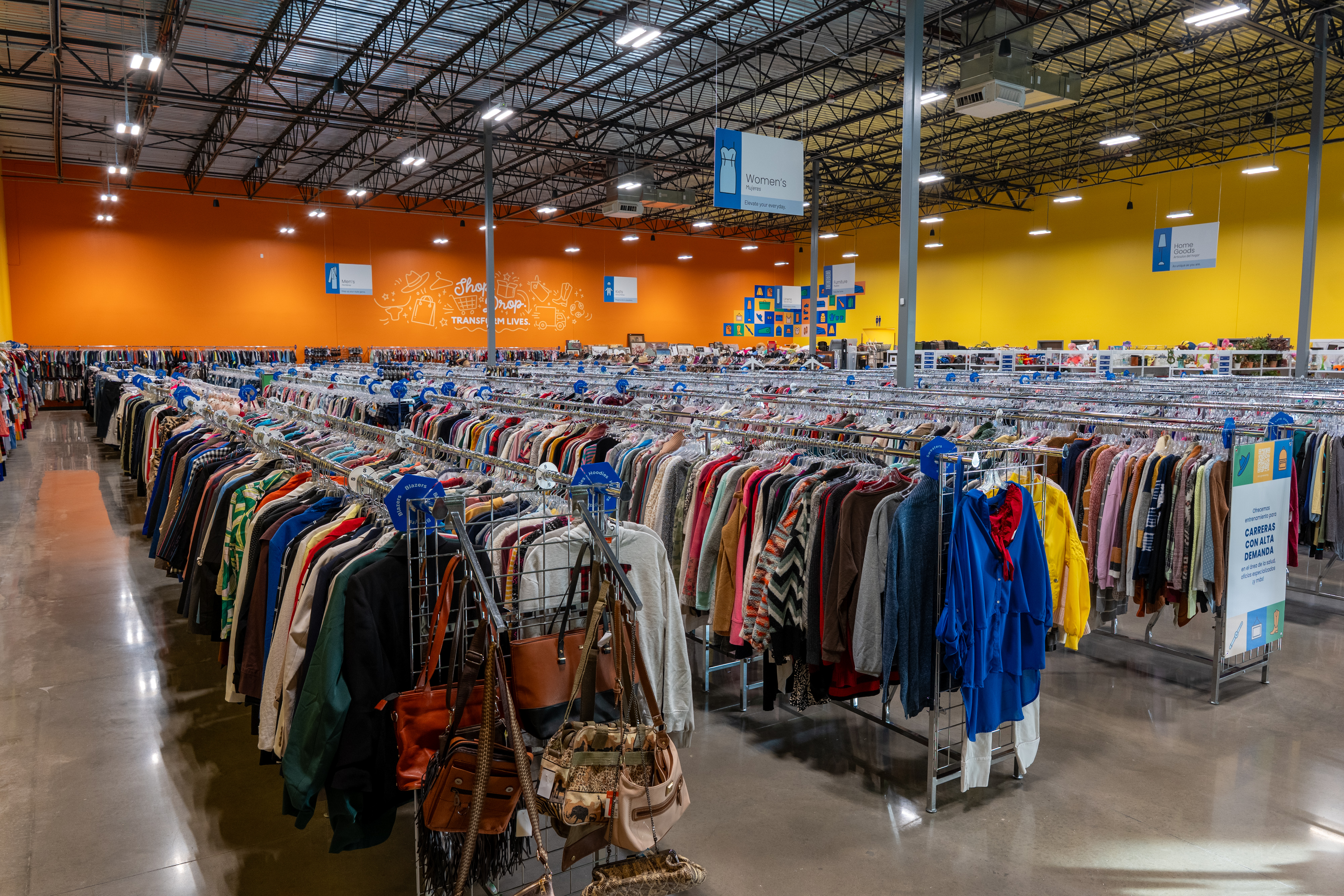 The redesigned environment responds directly to these limitations. We used bold, saturated colors throughout the store rather than gray with isolated accent walls. We intended to energize the space with bright, engaging use of color, enhancing the overall store perception and elevating Goodwill as a desirable retail destination. The space we have created is one shoppers will want to spend time in, an essential driver of retail performance.